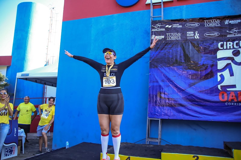 Corredora máster em corrida de rua, a paraense Dulci, com 26 anos de advocacia, recebeu uma homenagem na etapa de Marabá por ser pioneira nas competições entre advogados no Pará, participando desde a criação da Corrida dos Advogados da OAB/PA e do Circuito.