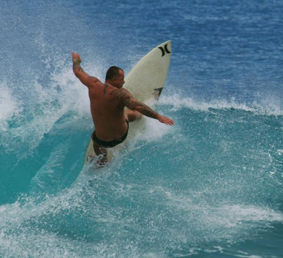 Fora da vida de competidor, foi instrutor da exemplar escola de surf da Prefeitura de Ubatuba, na Praia Grande, mesmo lugar onde ele aprendeu a surfar aos 5 anos de idade “com uma prancha emprestada de um amigo do meu pai, o Fabio Madueño”, recorda.